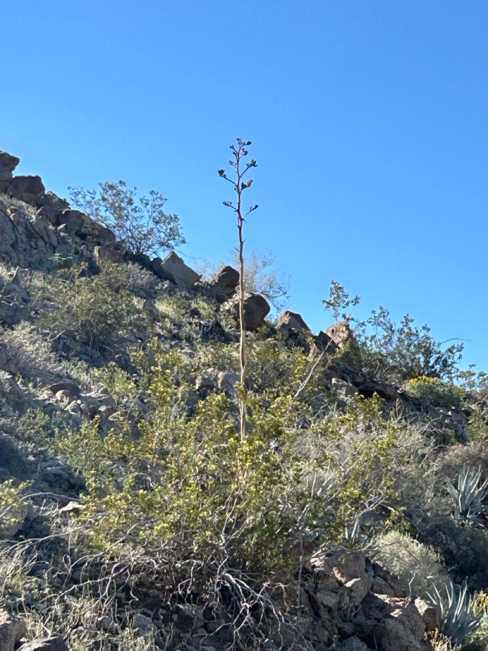 Hiding behind the Creosote Bush is something that really surprised me. I can’t believe how high these flowering stalks grow. But I also can’t tell what it is (I even asked the AI 🤷🏻♀️).