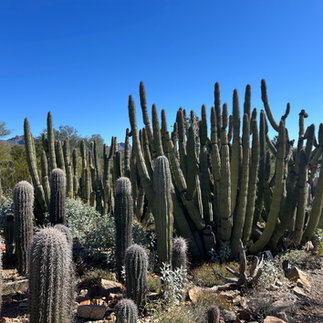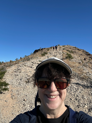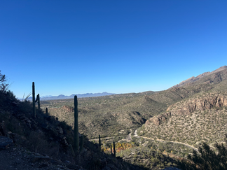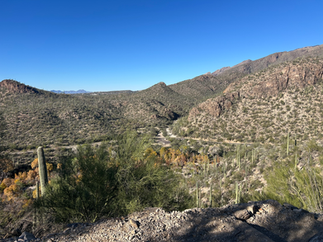 If you’ve been following my blog, you know that we’ve been hiking a lot - it’s our primary form of exercise and also we just love it for the variety of hiking locations, the fresh air, the views, etc. Most of our hikes have been in the woods, by babbling brooks or other waterways. We were not sure what to expect from Southern Arizona - was it just going to be dry desert? Were we going to enjoy the scenery? Or was it just going to be barren? Short answer, we loved it. Tucson is at 2,600ft elevation and the main part of town is in a valley surrounded by very interesting mountains. While not our usual scenery, we loved the rocks and the interesting flora (mostly cacti, but enough other stuff). The biggest difference though, was that it felt like we were climbing rocks (NOT rock climbing, to be clear). There were a lot of rocky paths, lots of gravel on the paths and a lot of interesting geological formations. Not a lot of tree cover anywhere, so it was good we went there in “winter”.